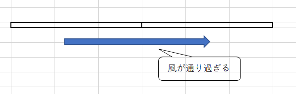 引き違い窓の場合、下図のように風が通り過ぎてしまいます↓