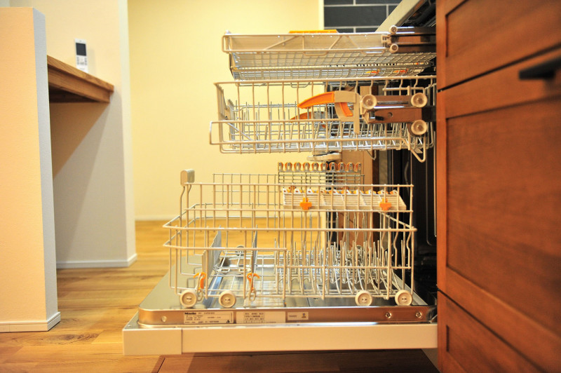食洗機自体の価格もそれほど変わりませんが、キッチンの無垢パネルの方が高価なため、キッチンの無垢パネルの面積が減り、減額となりました(笑)
