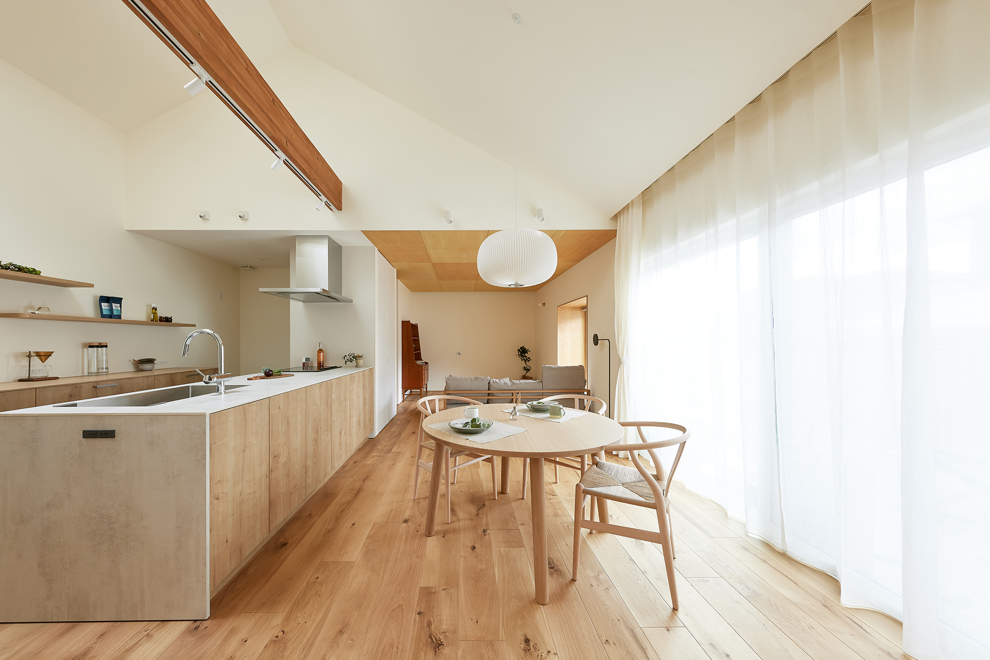 ガルバリウムで縁取った大開口の窓がアクセントとなり、