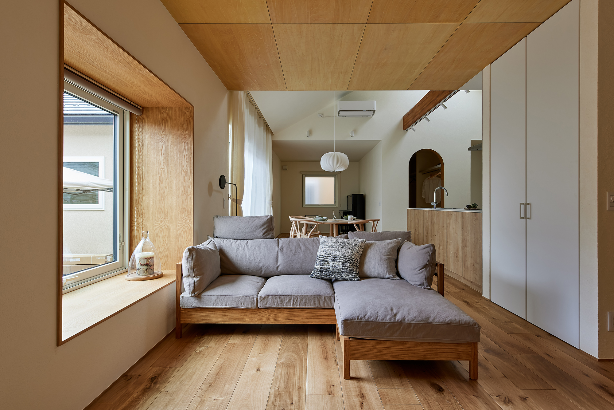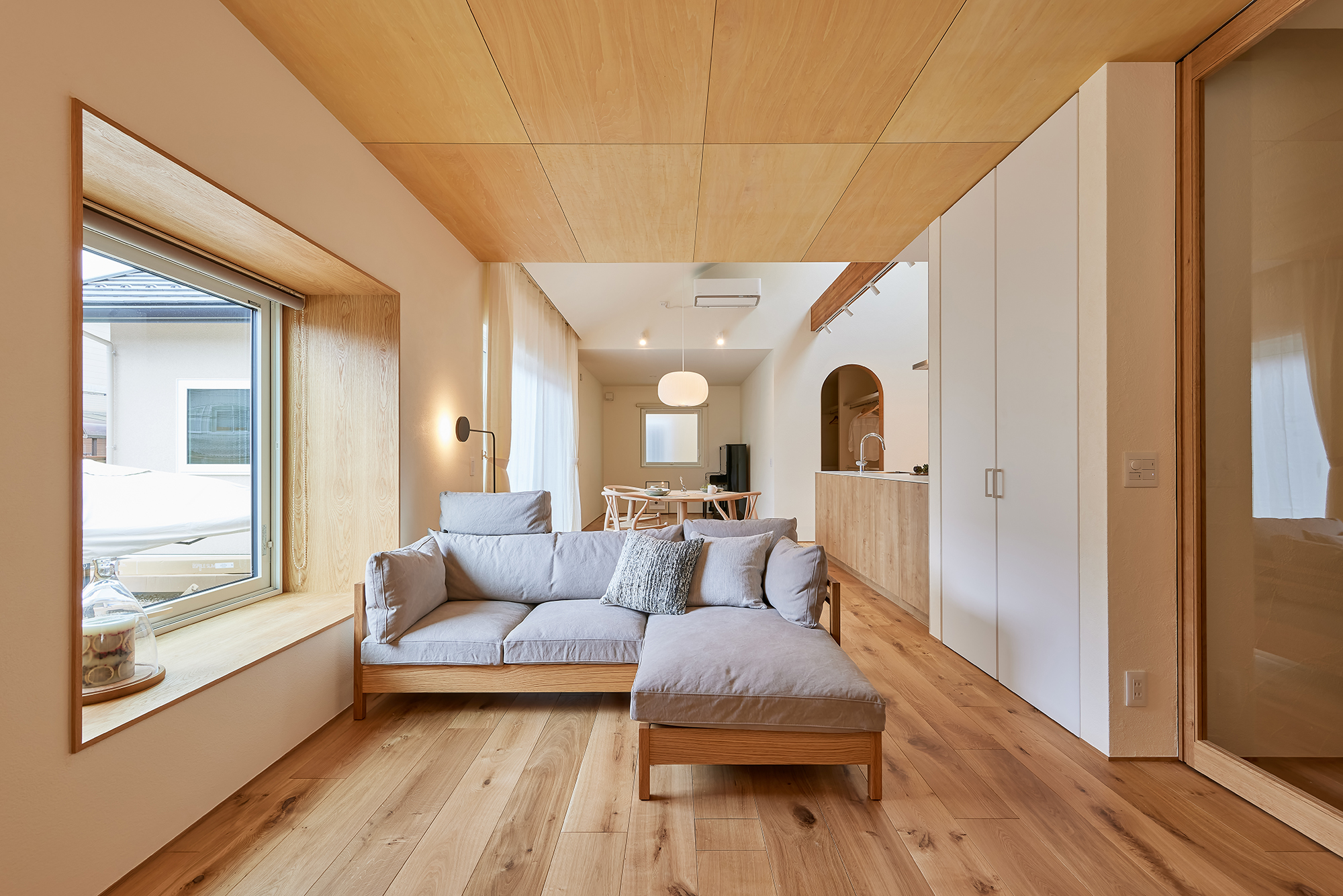 ・質感と機能性に優れた漆喰のリビングスペース